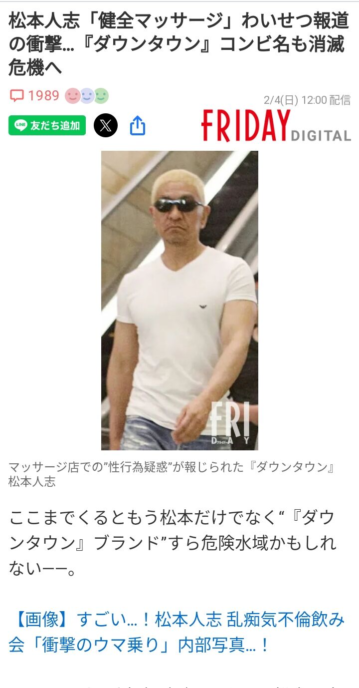 【FRIDAY】『ダウンタウン』コンビ名消滅危機へ