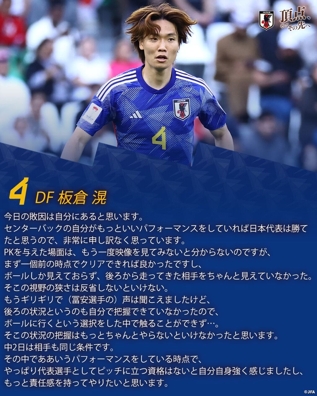 【悲報】サッカー日本代表、板倉代表引退みたいな発言しだす・・・・