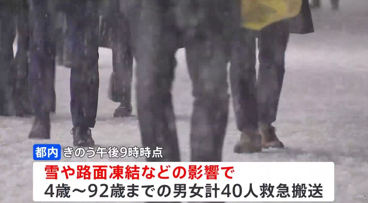 積雪の東京都内、転倒などで40人救急搬送…4~92歳の男女