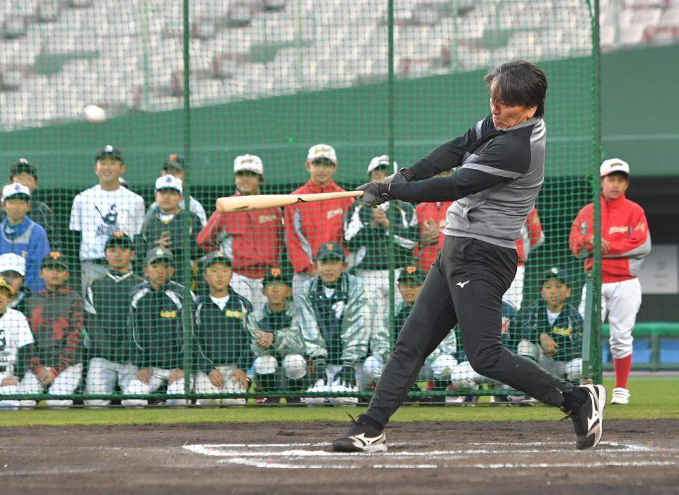 宮崎キャンプで6年ぶりに臨時コーチを務めている巨人OBの松井秀喜氏が、ひなたサンマリンスタジアム宮崎で、小学生を対象にした野球教室を開催した。