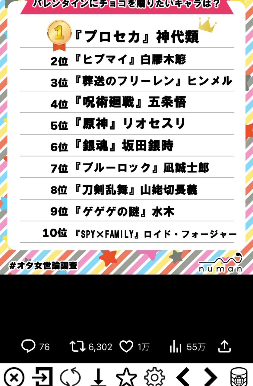 バレンタインにチョコをあげたいキャラTOP10🎉🥇1位『プロセカ』類