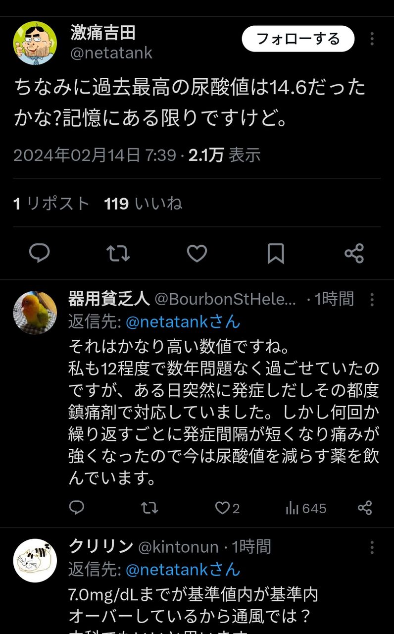 吉田製作所「尿酸値の最高値は14.6だった(基準値の2倍)」
