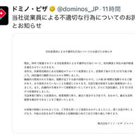 ドミノピザ、従業員の動画拡散を謝罪 鼻をほじり、生地になすりつけ 従業員の不適切な行為を映した動画がSNSで拡散しているとして、宅配ピザ大手のドミノ・ピザジャパン(東京都品川区)は、この従業員が勤める尼崎店(兵庫… (出典:朝日新聞デジタル) |