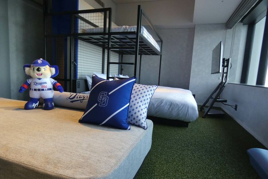 「ドラゴンズルーム」は2室のみ。ドラゴンズグッズ付きの宿泊プランもある(1室料金3万8000円~)。遠方からだけでなく地元ファンの利用も大いに見込めそうだ。