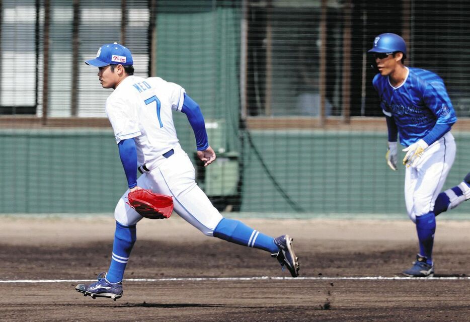 4番のドラフト6位新人・井上(四国IL・徳島)はフォークで空振り三振。「いいボールだった。自分の課題もできた」と振り返った。元チームメートの6番・京田は一ゴロに打ち取られ、「いいボールを投げていた。最後はフォークです」と話し、試合後に旧交を温めて成長に拍手を送った。