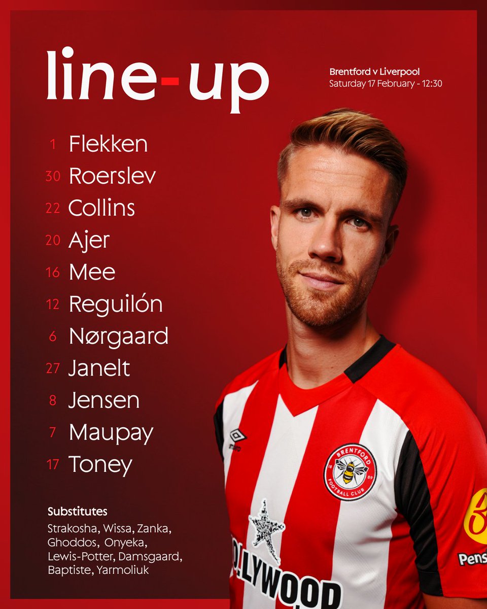 Flekken; Roerslev, Collins, Ajer, Mee, Reguilon; Norgaard(C), Janelt, Jensen; Maupay, Toney.