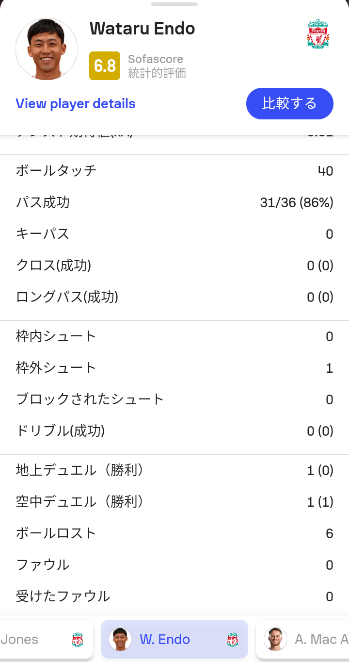 【朗報】遠藤航さんのスタッツ…全然デュエルしてないwwwwwww