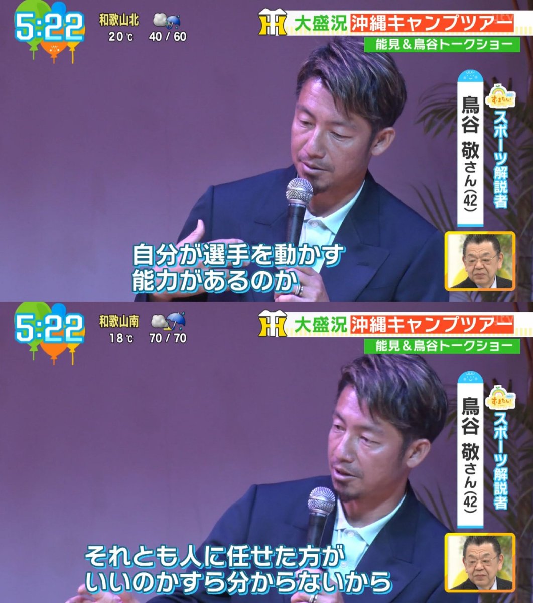 鳥谷がトークショーで入閣前向きにも取れる発言したんやね