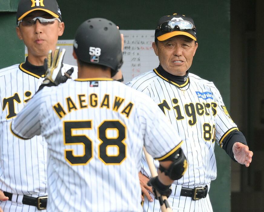 「2試合連続ホームランやからね。きのうゲラからホームランを打っている。2試合じゃないな。2日連続か。まあでも、ずっと左がね。きょうは福島がセンターで、まだ育成だけど守ったけど、近本のところで。どっちか言うと去年は右の外野手って言ってたのが、右バッターばかりになってしまったので、近本の他、左は前川1枚だけでしょ。そういう意味でも、きのうもそうだし、きょうもね、本当に順調にいいアピールをしていると思いますね。あとはケガですね、前川の場合は。去年も良かったけど、そこでケガをしたので、そのへんは注意しながら。本人も一番分かってると思うんだけど、そのへんなければ当然、1軍の戦力としてね、やっていけると思うんで。今もレフトでノック受けてたけど、レフトの人もね、うかうかできないかも分からないですよ(笑)」