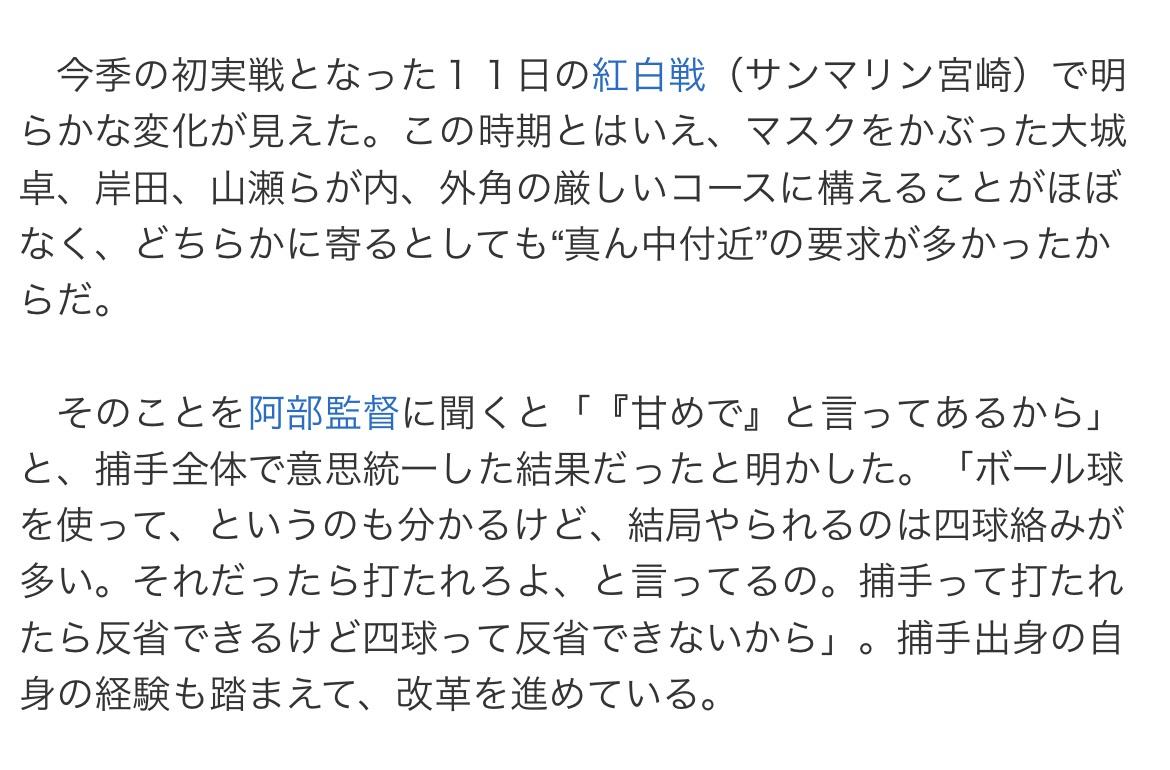 【巨人】阿部監督「捕手は甘めに構えさせる方針。捕手は四球じゃ反省できない。」