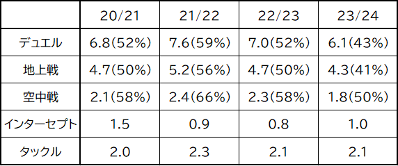 プレミアに来てからデュエル勝率軒並みガタ落ちしてるもん