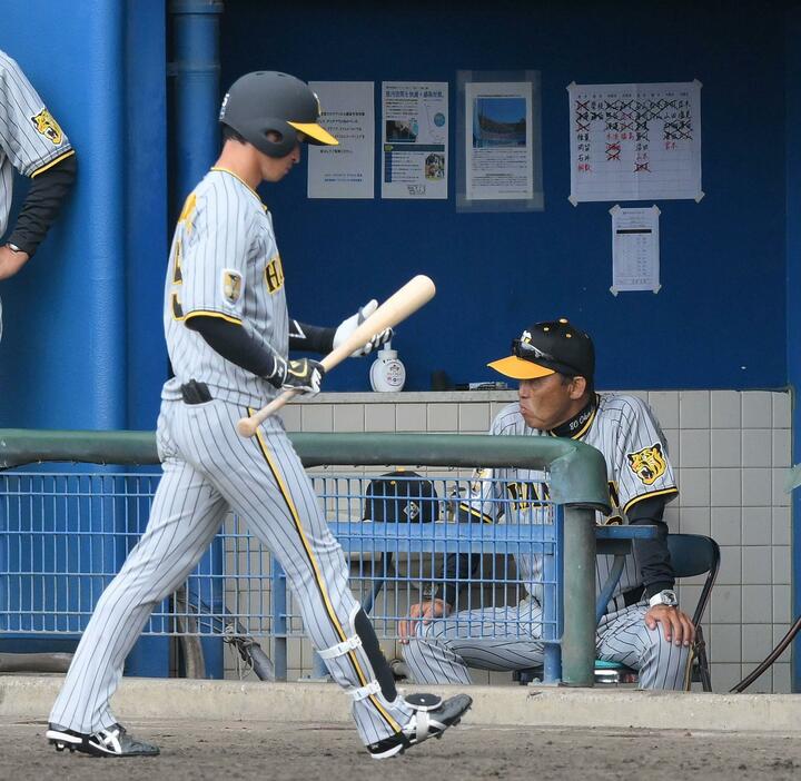 「そうや、逆にしたんや。ちょっとなあ、交代して、後で出るやつのありがたみをわからせようと思ったやけどな。後から出て行くとなかなか後から出ても打てんやろ?え?他の代わったやつな、いつもと逆やけどな、それだけ難しいということよ。1打席いうのはな、準備しかりなあ」