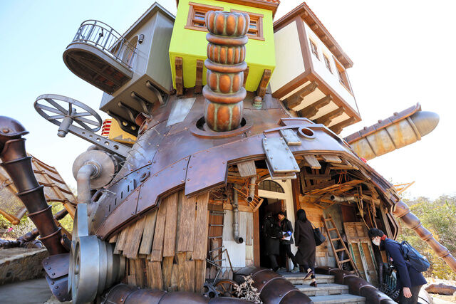 ジブリパークの新エリア「魔女の谷」に登場した、「ハウルの動く城」の「ハウルの城」とかかし Photo By 共同