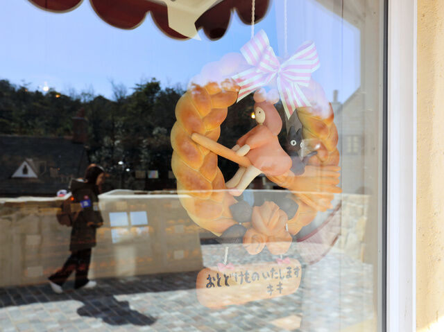 「魔女の宅急便」に登場するグーチョキパン屋のショーウィンドー=2024年2月28日午後1時41分、愛知県長久手市、溝脇正撮影