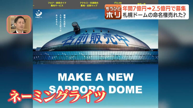 札幌ドーム命名権(年2.5億で応募無し)、当初の案では年7億円だった模様