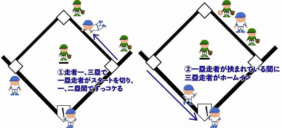 中日は1日、取り組んだのは走者一、三塁で始まる走塁練習。一走がスタートを切ってからコケる。一、二塁間での挟殺プレーの間に三走が生還する“奇策ズッコケ大作戦”だった。
