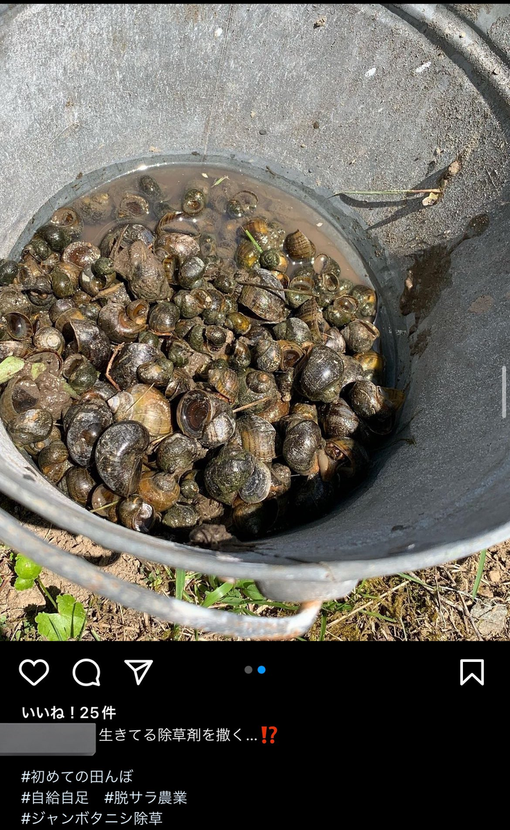 (出典 脱サラして農家始めた人、生きている除草剤とジャンボタニシを田んぼに撒いてしまうwwwwwwwwwwwwwwwww)