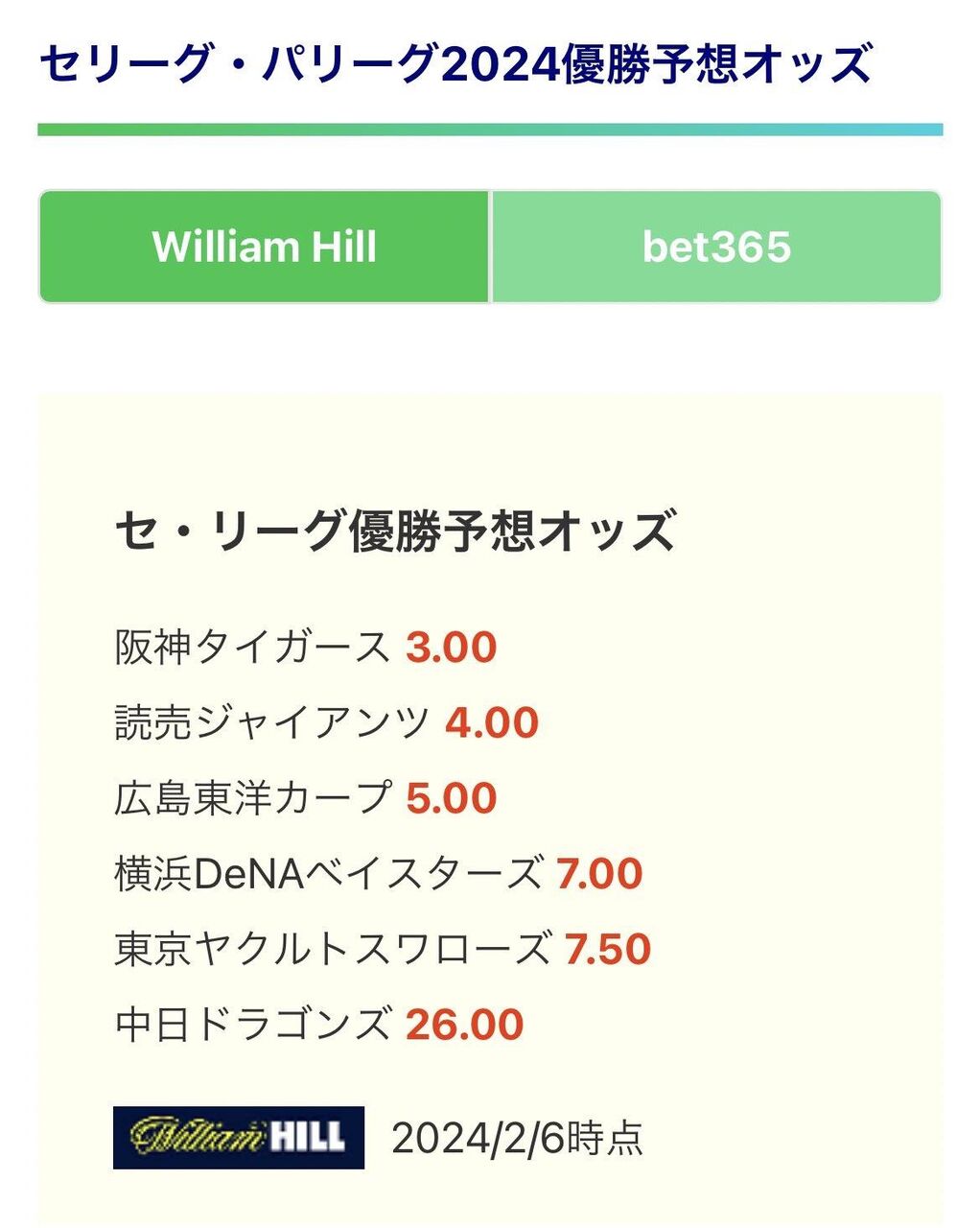 中日ドラゴンズ、海外ブックメーカーで6番人気になる