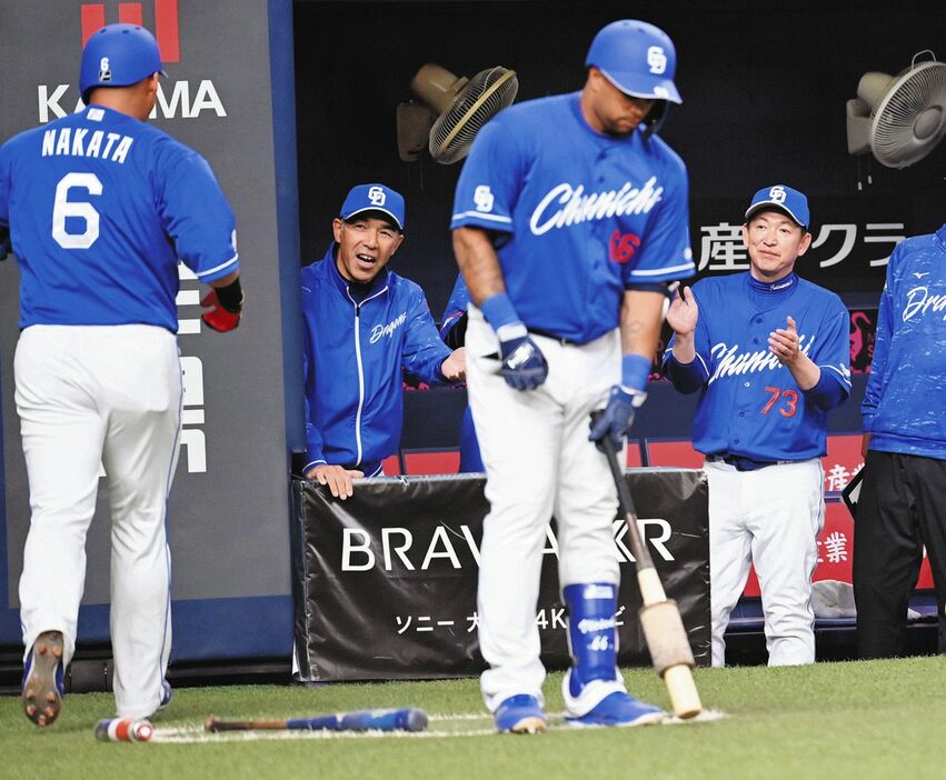 ▼新加入・中田がオープン戦1号 今、フォームを試行錯誤しながらやっている。その中で、結果が出た。出て悪いことはない。だいぶ雰囲気もよくなってきた。これから調子上げてもらえたらいい