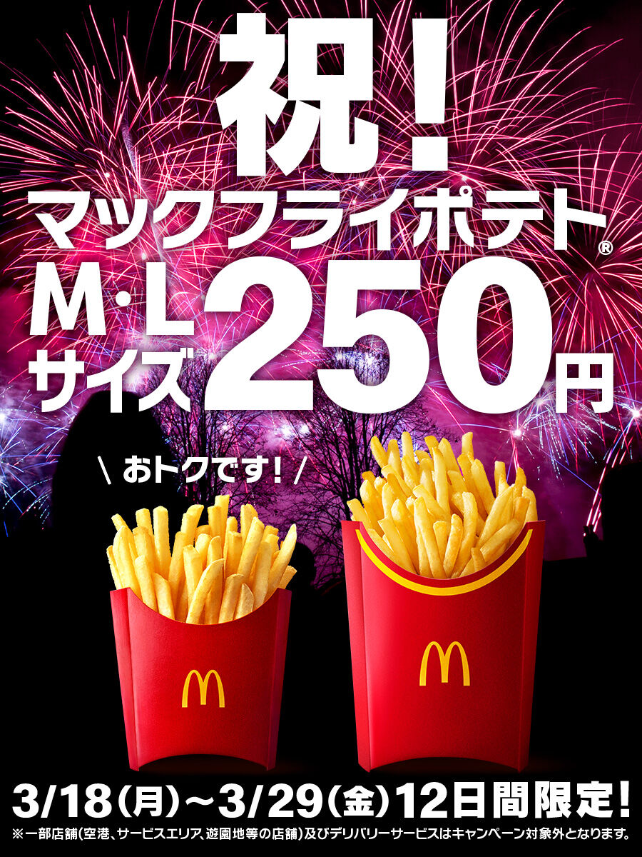 お待たせいたしました!#月曜からポテトML250円 pic.twitter.com/oc6ScDO5VL— マクドナルド (@McDonaldsJapan) March 14, 2024