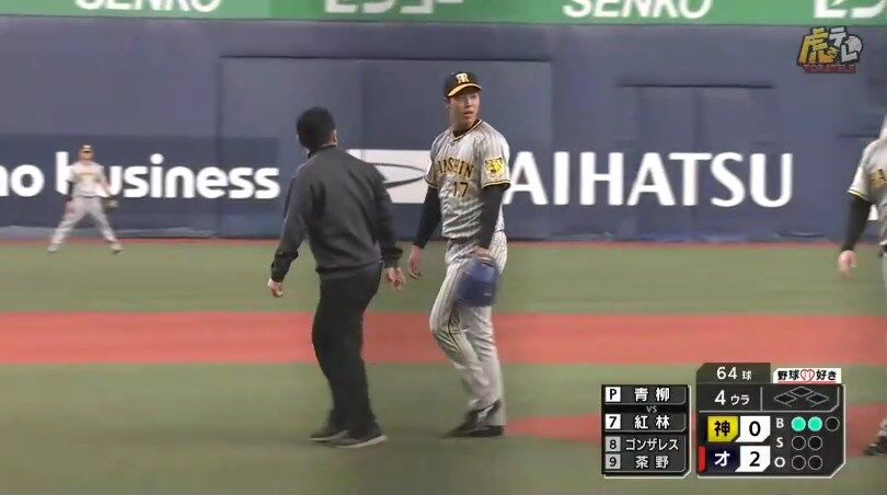 【オリックス対阪神オープン戦】阪神・青柳、投球後に何らかの違和感を訴えていったんベンチへ、その後戻ってくる