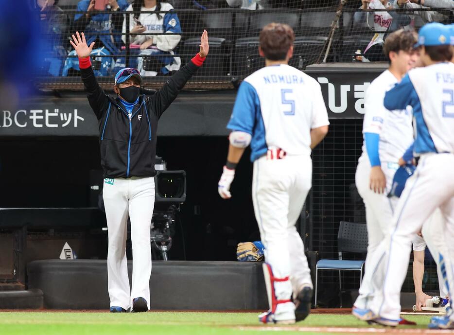 新庄監督は「明日の一面は何ですか?」と報道陣に問いかけ。「たまにはこのマルティネスのホームラン打って、劇的なサヨナラホームラン。本人見るとテンション上がるんで」と促すほど、最高の勝ち方となった。