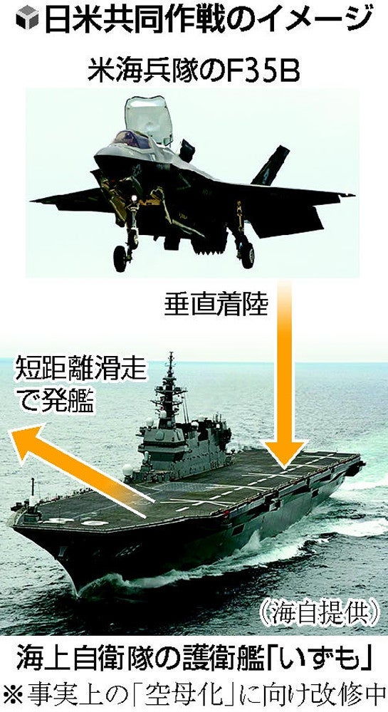 このため、既に米軍岩国基地(山口県岩国市)に配備されている米海兵隊のF35Bを使った発着訓練を実施し、改修した耐熱甲板などのテストを行う方針だ。米軍の運用技術を習得し、将来的には自衛隊のF35Bが米艦船で発着することも視野に入れる。