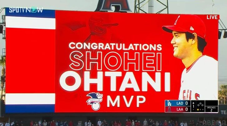 大谷翔平、エンゼルスタジアムがい旋1打席目に昨季MVP祝福で異例の約1分間試合中断