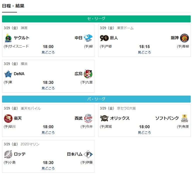 NPB開幕戦、6試合中5試合が全国中継