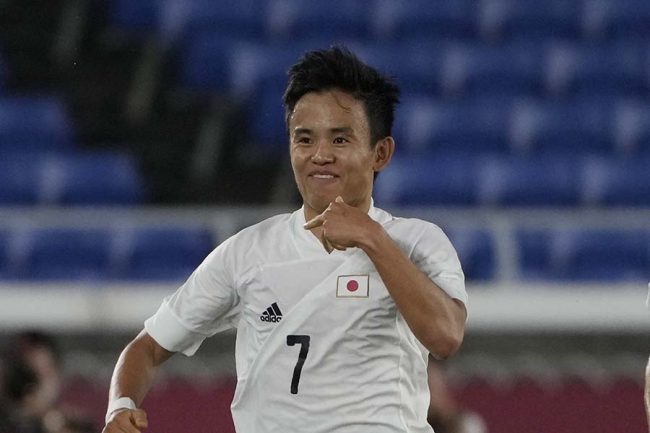 日本は27分、久保建英が押し込んで3試合連続得点。34分には酒井宏樹が2点目を決めた。後半には三好康児が決めて3点目。試合終了直前、途中出場の前田大然がゴールを決めて4―0と突き放した#Tokyo2020 #サッカー pic.twitter.com/d19b1qoMWB