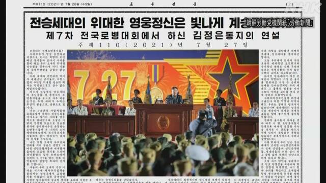 北朝鮮のキム・ジョンウン(金正恩)総書記は朝鮮戦争でアメリカに勝利した記念日と位置づける27日演説を行いましたが、去年言及した核兵器の保有には触れませんでした。韓国メディアは北朝鮮が対外関係の改善に乗り出す中で刺激的な発言を避けたと伝えています。