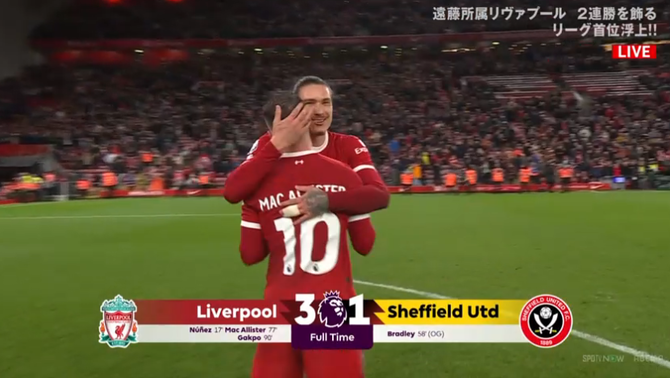 10番が英雄彷彿の決勝ゴラッソ! リバプール、シェフィールド・Uを3-1撃破で首位堅持! 4日前に打撃を受けた遠藤航は欠場https://news.yahoo.co.jp/articles/0c2cf5e96bacc74e3804d1d0007be62ca2acf863