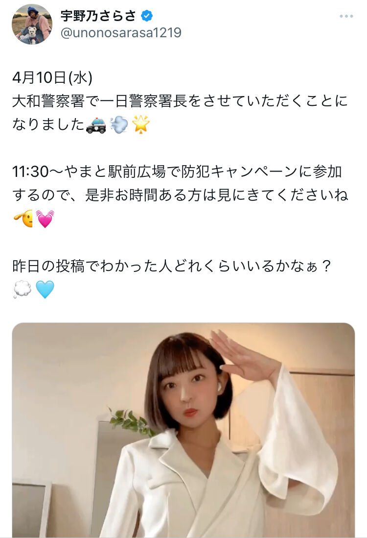 大和警察署で一日警察署長をさせていただくことになりました🚓💨🌟11:30~やまと駅前広場で防犯キャンペーンに参加するので、是非お時間ある方は見にきてくださいね🫡💓