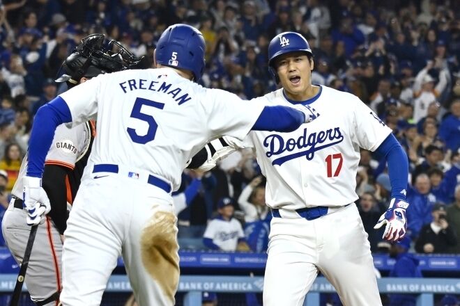 現地4月3日、ロサンゼルス・ドジャースは本拠地でサンフランシスコ・ジャイアンツと対戦し、5対4の勝利を収めた。試合最大のハイライトは7回裏に訪れる。開幕から9試合目、それまで40打席もホームランを打っていなかった大谷翔平に待望の第1号が飛び出したのだ。