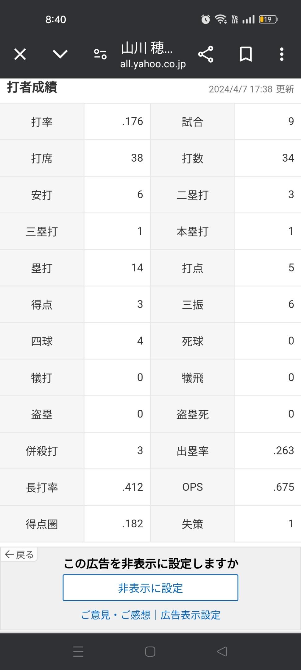 山川穂高「打率.176(34-6)1本5打点 OPS.675」←こいつについての率直な感想