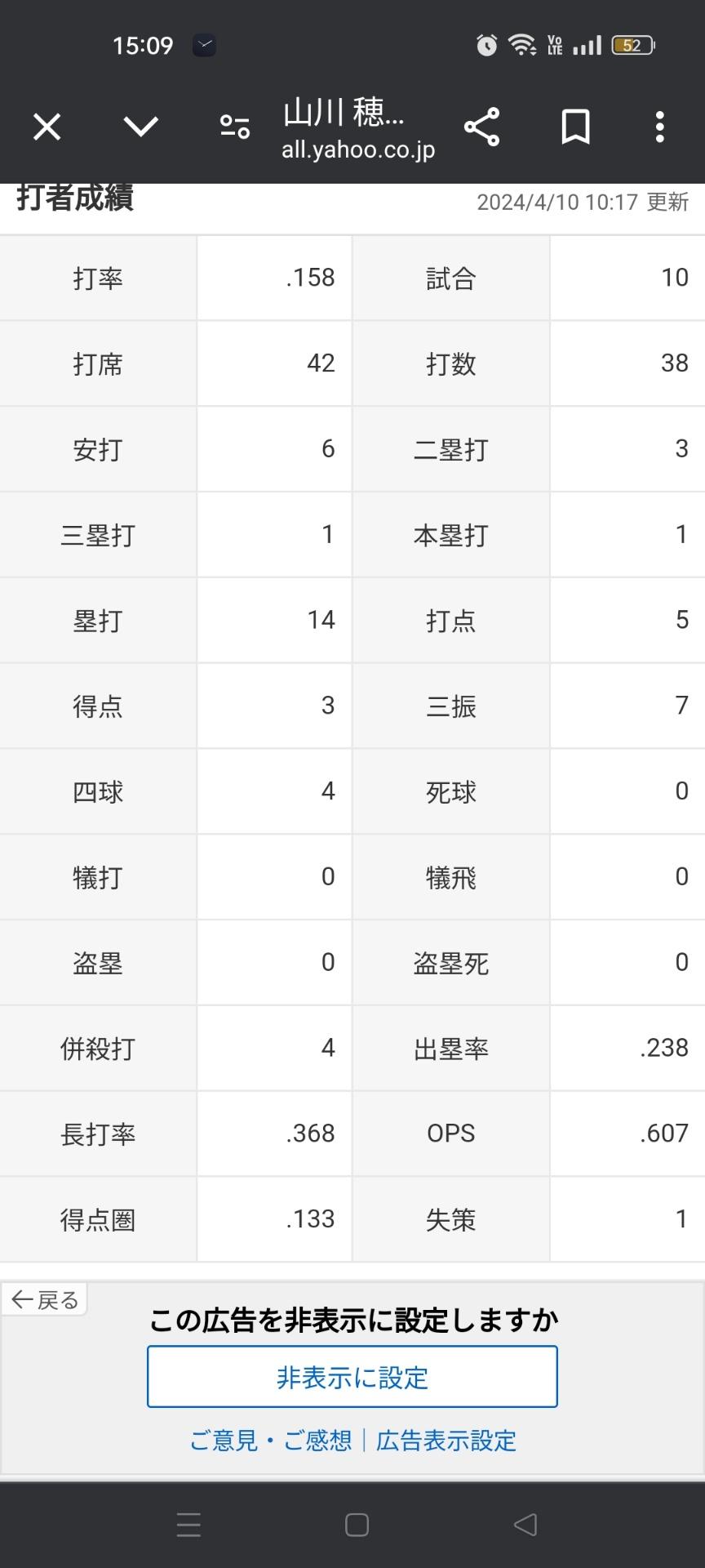 山川穂高(年俸4億)「打率.158(38-6)1本5打点 OPS.607」←こいつについての率直な感想