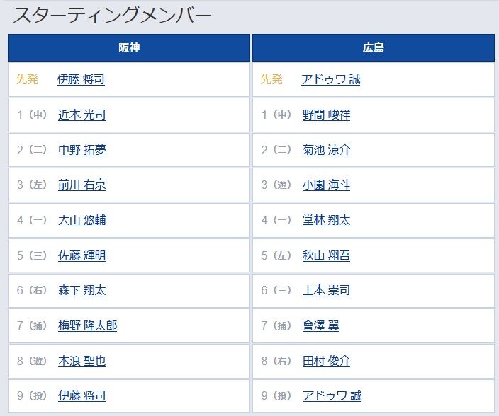 【阪神対広島2回戦】3(左) 前川 右京 5(三) 佐藤 輝明