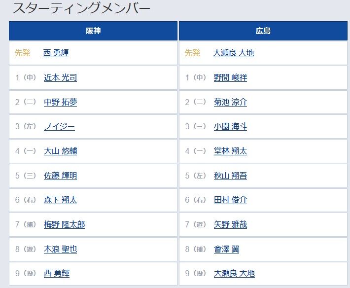 【阪神対広島3回戦】3(左) ノイジー 6(右) 森下 翔太