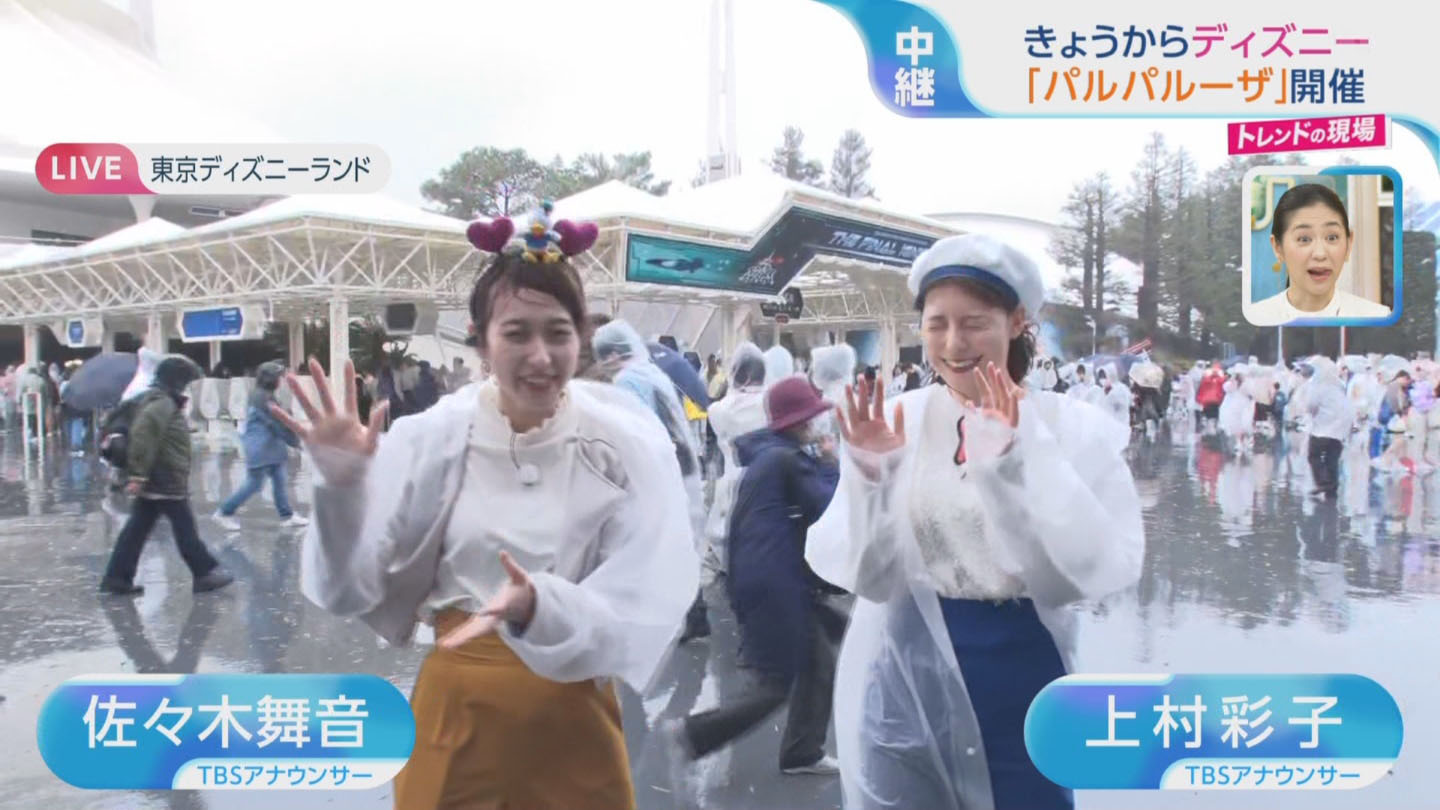 暴風雨の東京ディズニーランドから中継レポートした上村彩子アナと佐々木舞音アナの衣装がお尻や股間に張り付いていました! [2024年4月9日 ひるおび!] 続きを読む