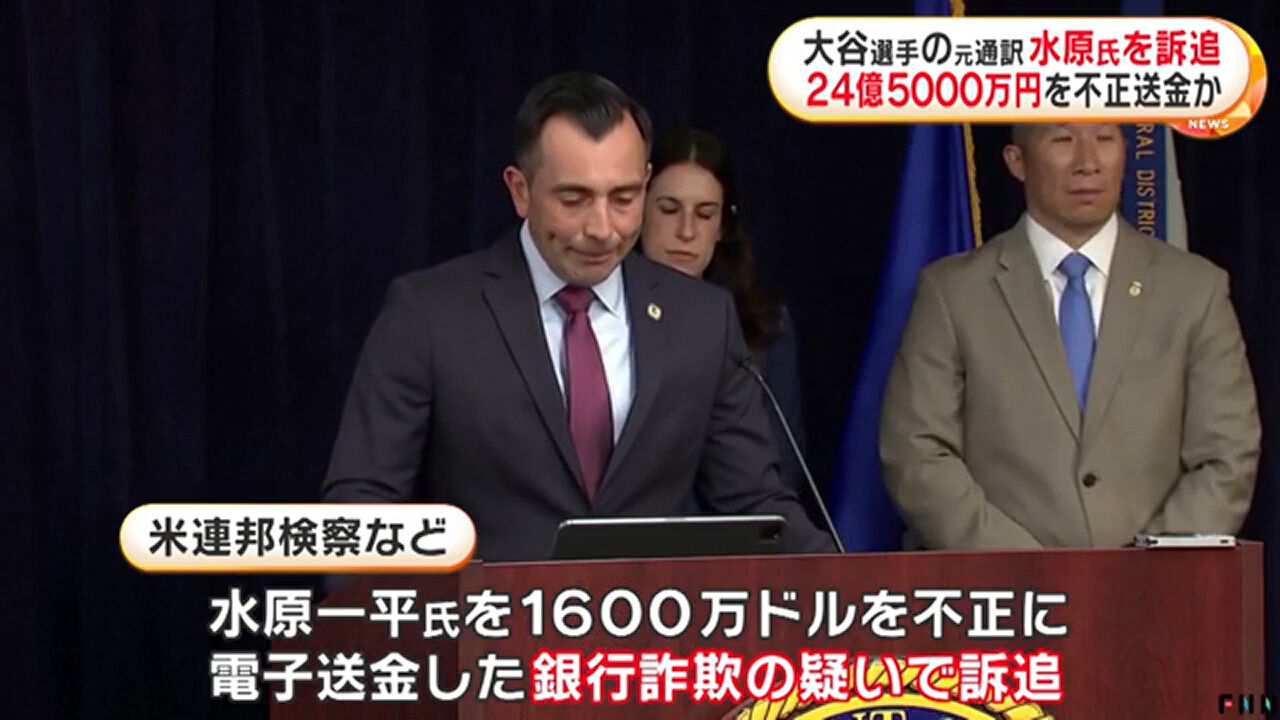 大谷選手になりすまして銀行に電話も…不正送金24億5000万円で元通訳の水原一平氏が銀行詐欺容疑で訴追 大谷選手は被害者
