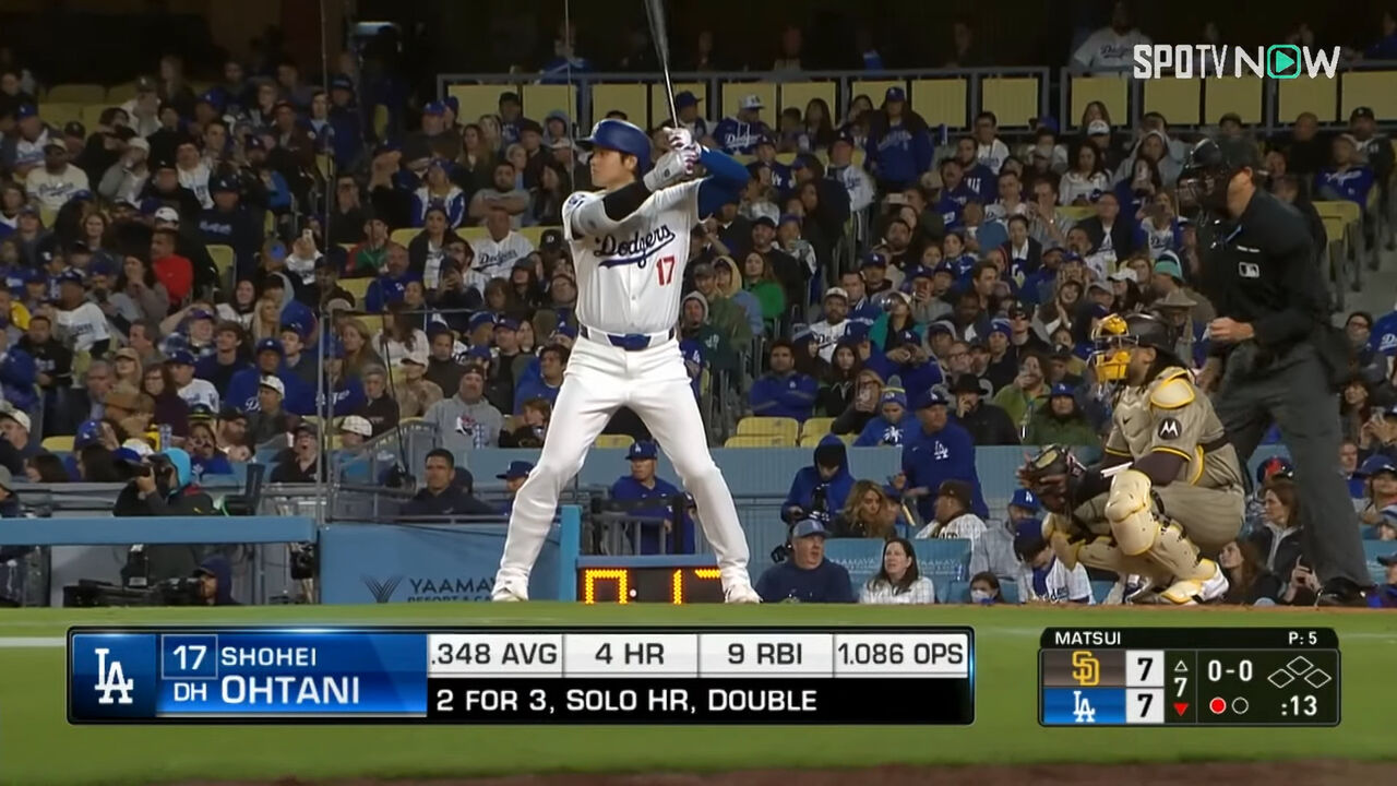 大谷翔平 名門打率.353 名門本塁打4 名門打点9 名門OPS1.098