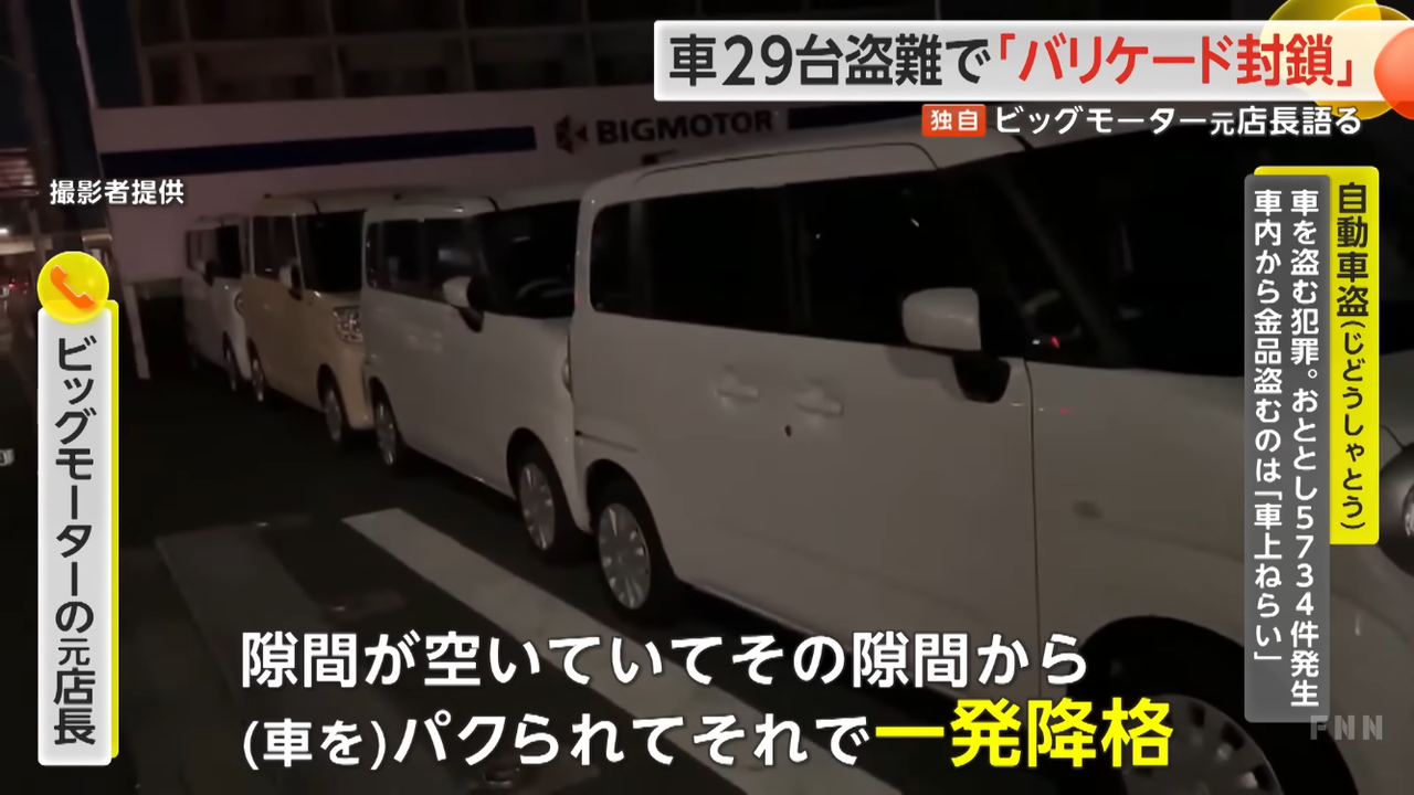 ビッグモーターさん、中古車の盗難が相次ぎ閉店後に車でバリケード作るのが義務化される