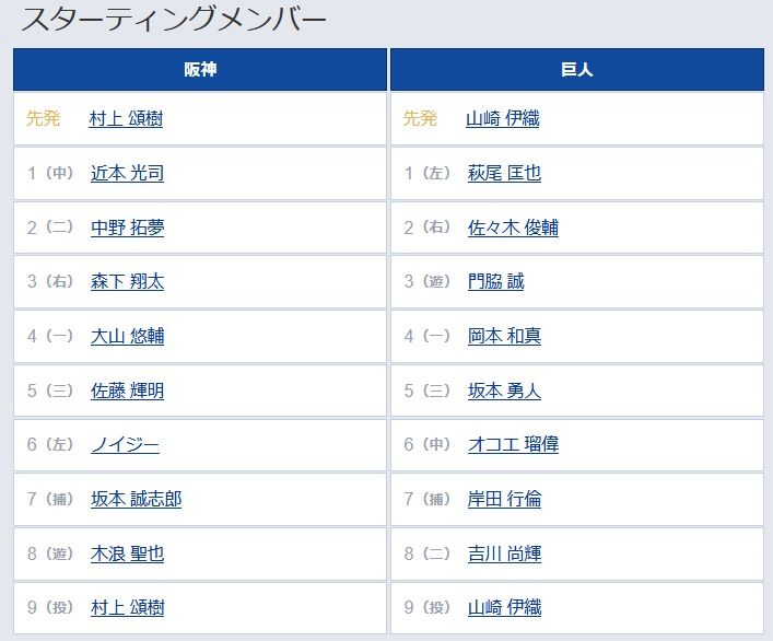 4 (一) 大山 悠輔 4 (一) 岡本 和真