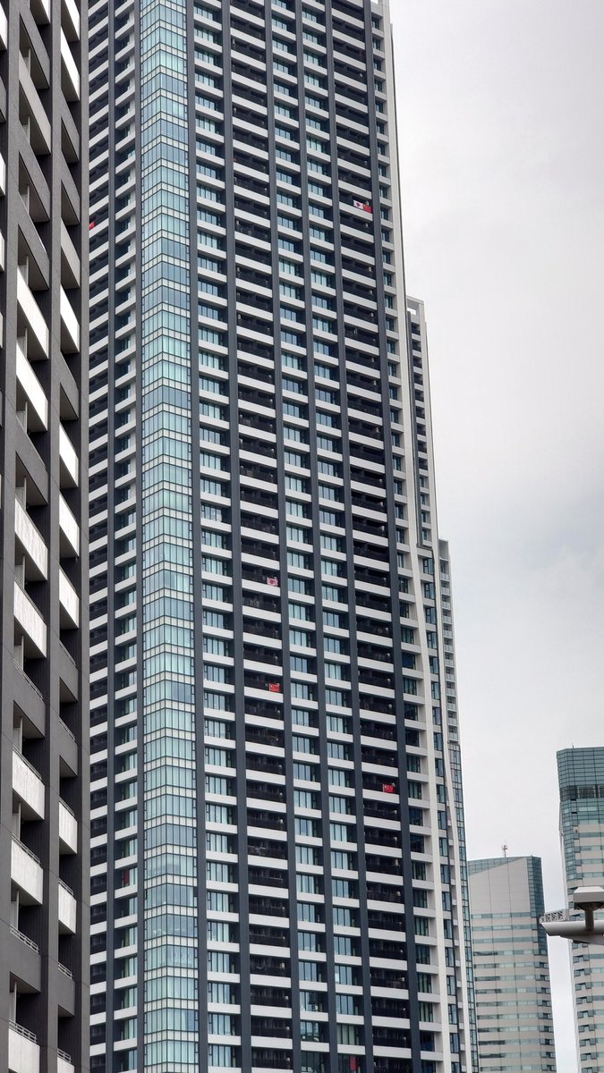 【五輪】選手村すぐ横のタワマンに「旭日旗」旗の先には韓国選手団の居住棟