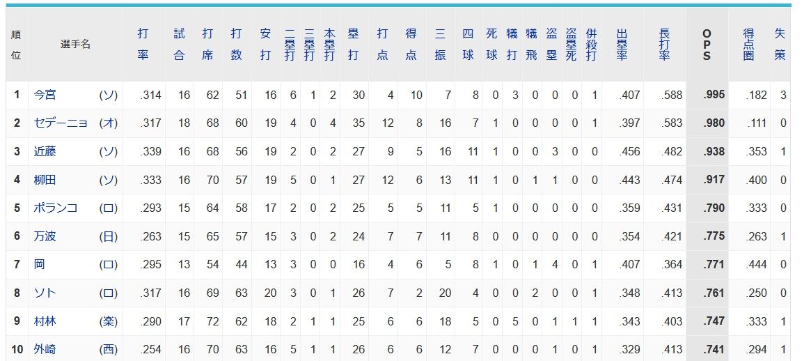 パリーグのOPS1位wwwwwwwwwwwww