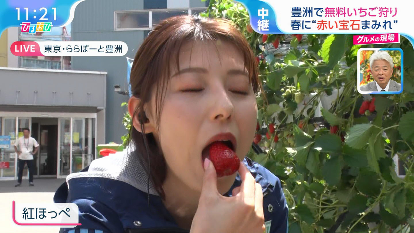 苺とスイーツを食べる上村彩子アナです! [2024年4月16日 Nスタ]