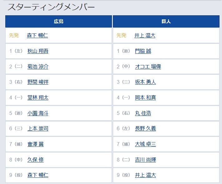 3 (右) 野間 峻祥 3 (三) 坂本 勇人
