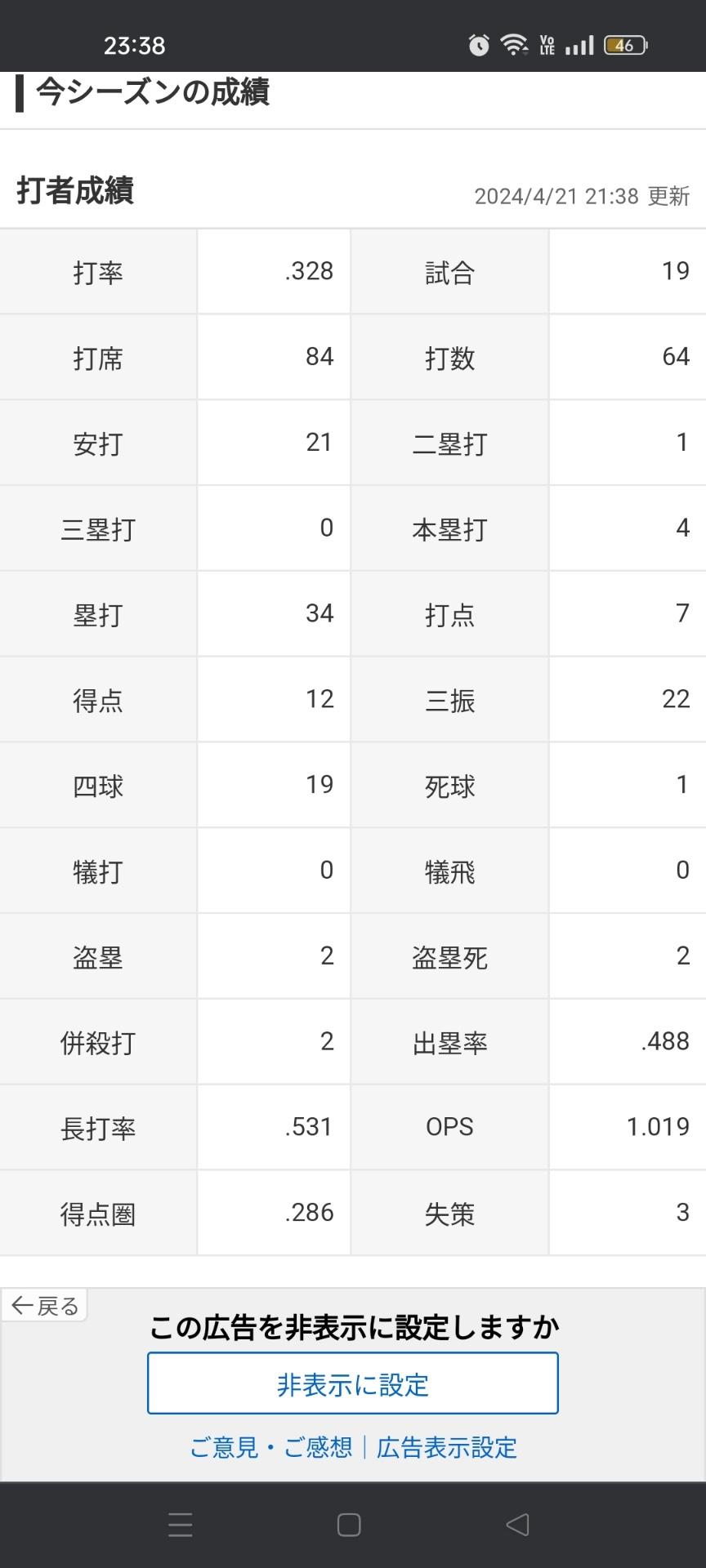 アカンスヨ村上「打率.328(64-21)4本7打点 OPS1.019」←こいつについての率直な感想