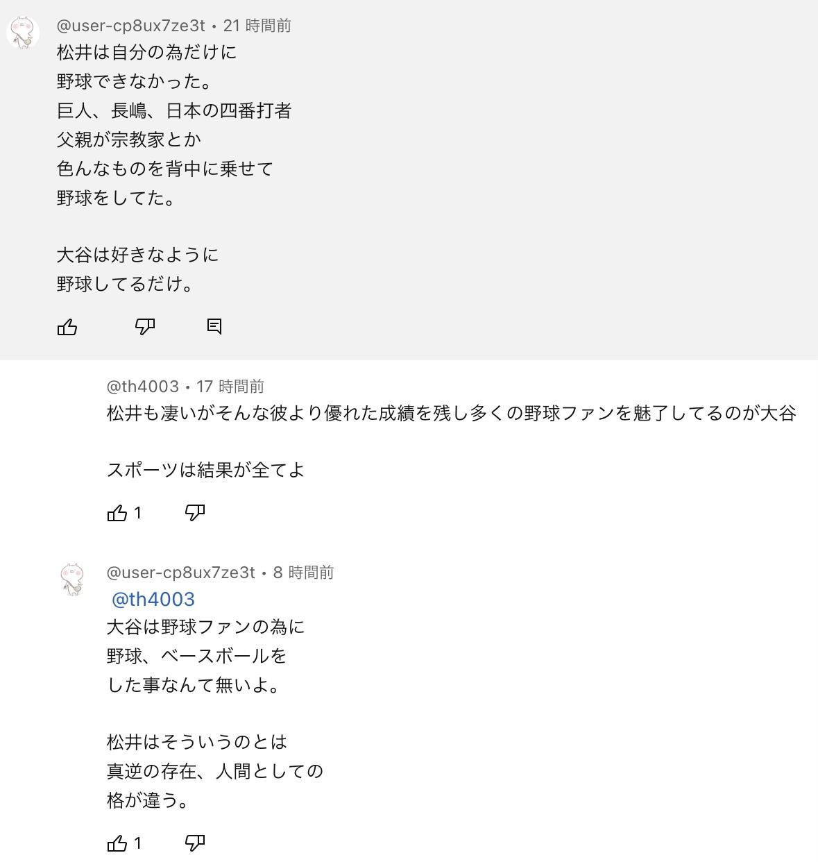 有識者「松井秀喜は自分の為だけに野球ができなかった。大谷翔平は好きなように野球をしているだけ。」