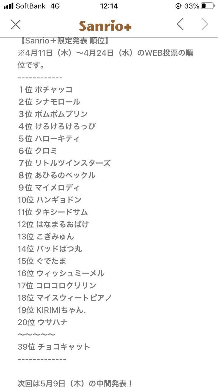 【超速報】サンリオキャラクター大賞最新速報、なんGのけろけろけろっぴが躍進!